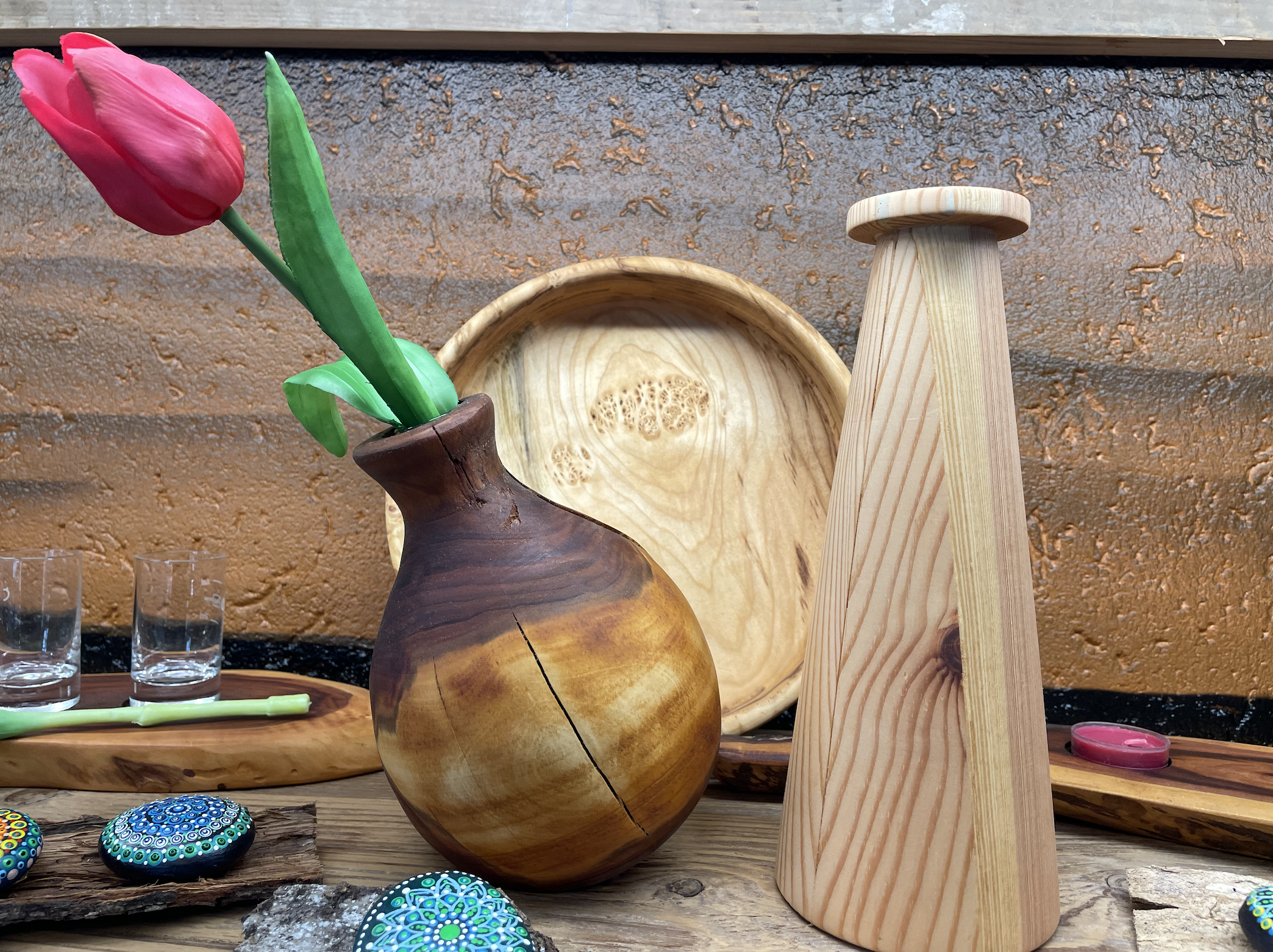 Holzvasen, Holzschalen